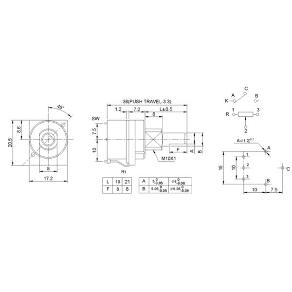 17mm Dimmer Potentiometer SPDT With Push Switch 10A 250VAC WH116AK
